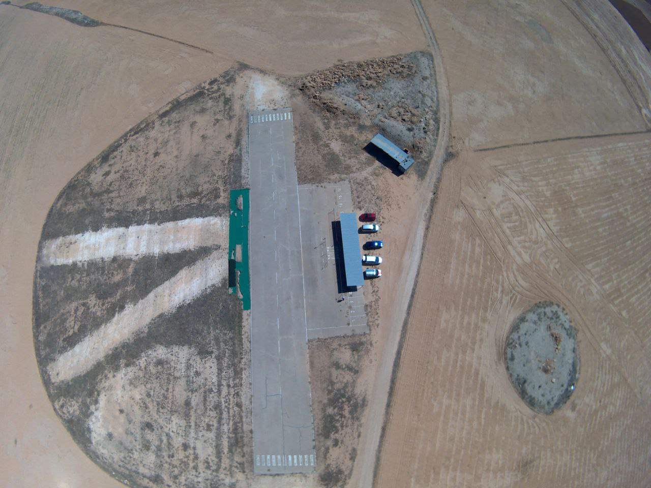 Contamos con una amplia pista de aterrizaje de 120 metros de largo y 15 metros de ancho, perfectamente pavimentada . A lo largo de la pista se encuentran 16 boxes espaciosos para el estacionamiento de aviones. Además de una zona techada destinada al mantenimiento y resguardo de las aeronaves.
